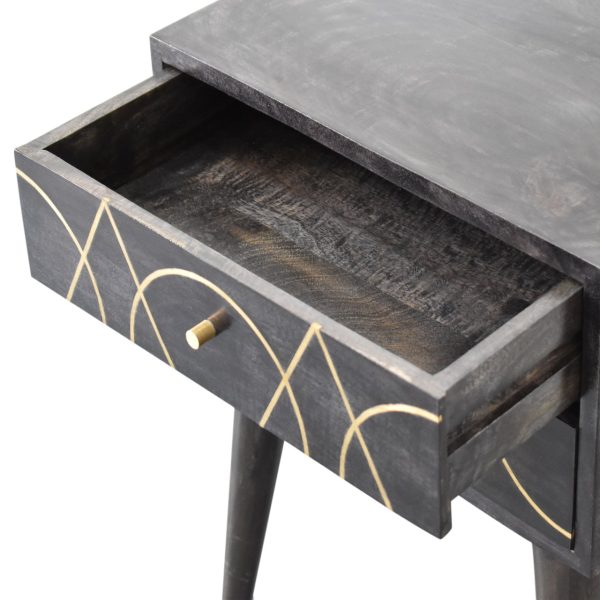 Art Deco Patterned Brass Inlay Bedside Table