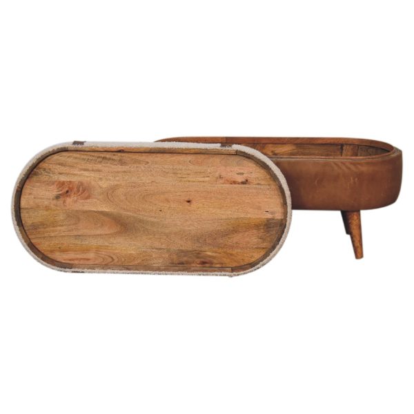 This bouclé leather bench features a soft cotton seat with an oval buffalo leather base and matching straps, supported by solid oak-style Nordic legs. Ideal as an oak leg accent bench or hallway seating bench, it provides versatile, stylish seating while adding texture and contemporary charm to any space.