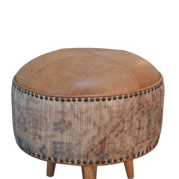 Buffalo Leather Durrie Footstool