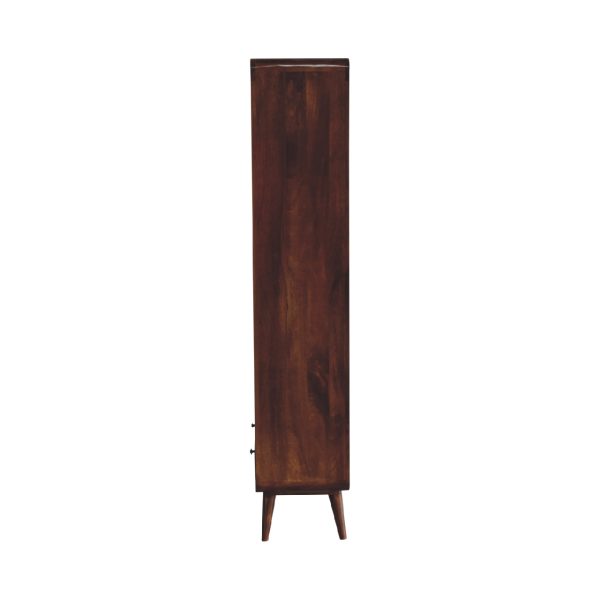 This chestnut bookcase is crafted from solid mango wood and features a warm chestnut finish that highlights the natural grain. Designed as a farmhouse bookcase, it includes four open shelves and Nordic-style legs, offering practical storage and display while adding curved, modern elegance to any living space.