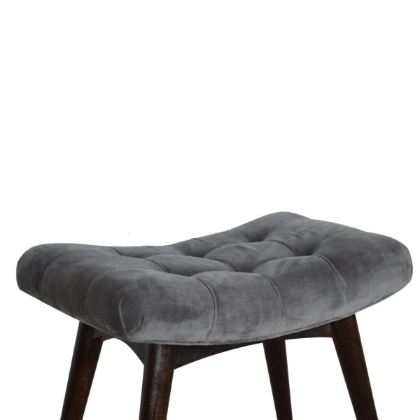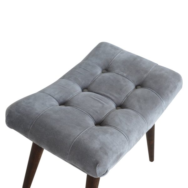 This grey velvet bench features a smooth, plush seat crafted from cotton velvet for comfort and style. Supported by walnut-toned mango wood legs, this Scandi style bench adds charm and practical seating to bedrooms, entryways, or living spaces.