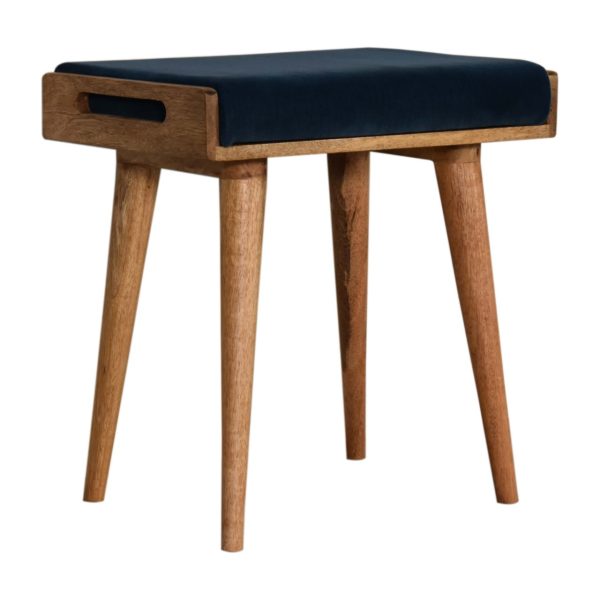 This teal velvet footstool features a flat tray-style top and solid Scandi-style walnut legs. Fully assembled, it serves as a comfortable seat, accent piece, or occasional stool, combining plush fabric with sturdy construction to enhance any modern bedroom, lounge, or living space.