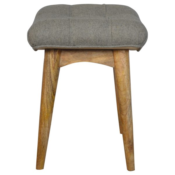 This grey tweed bench features a curved, buttoned seat upholstered in stylish grey tweed, supported by solid mango wood oak-style Nordic legs. Ideal as an oak leg accent bench or bedroom seating bench, it provides functional, stylish seating while enhancing any living space.