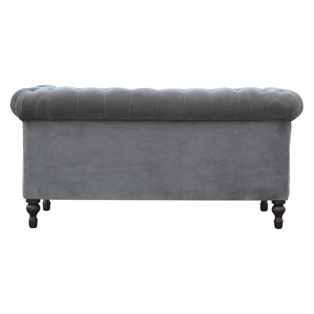 This Grey Velvet Chesterfield Sofa is a sophisticated two-seater that combines timeless elegance with versatile style. Upholstered in plush grey velvet, it features deep button tufting, refined piping, and enveloping sheltering arms for ultimate comfort. Crafted from solid, sustainably sourced mango wood and supported by four hand-turned walnut legs, this fully assembled sofa serves as a striking focal point, seamlessly enhancing both modern and classic interiors with enduring charm.