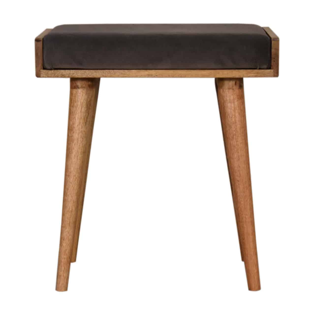 Grey Cotton Velvet and Walnut Scandi Footstool