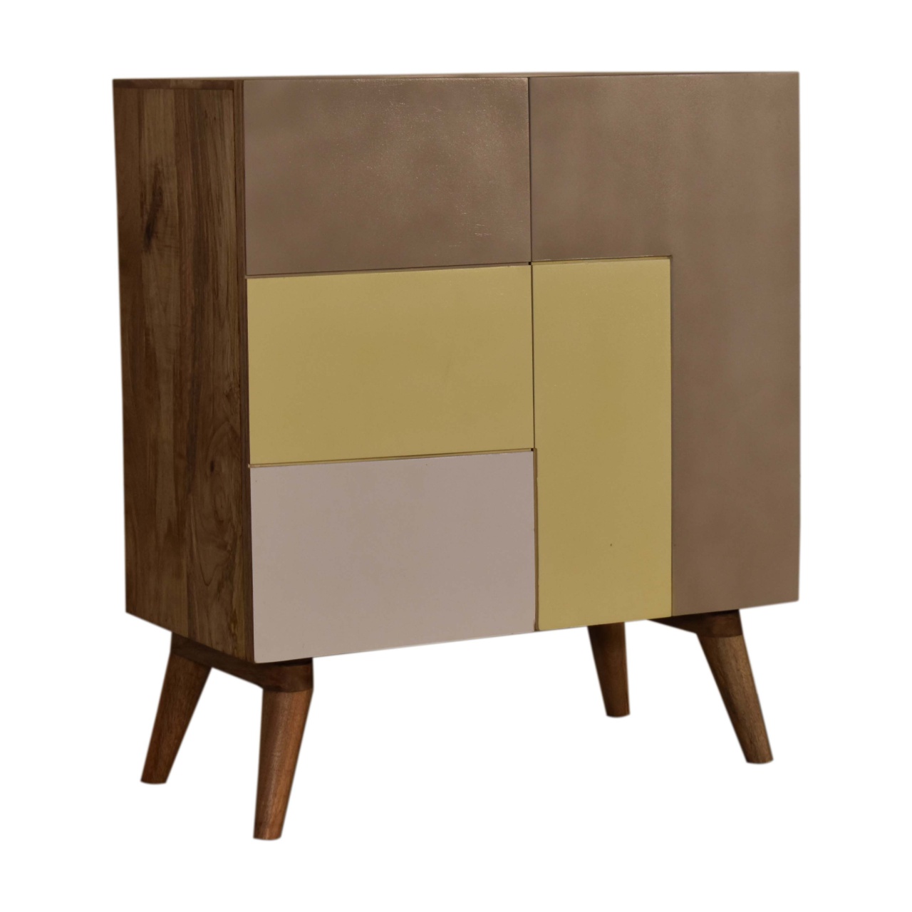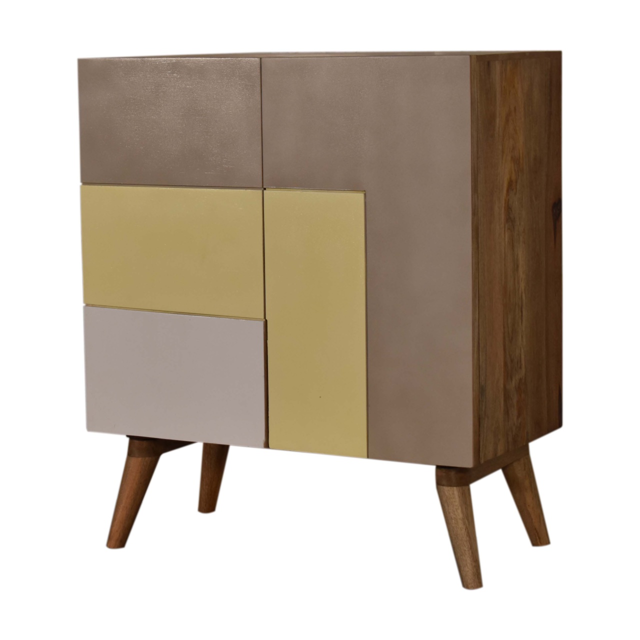 Cabinet with hand-painted L-shaped design in vibrant yellow tones