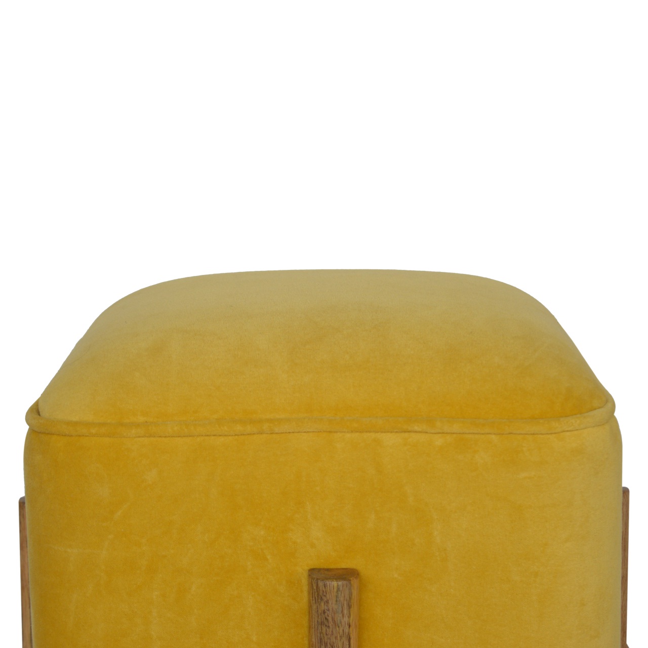 Mustard Cotton Velvet Assembled Oak Toned Legs Footstool