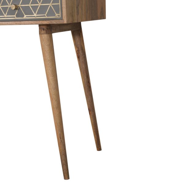 Oak Toned Geometric Gold & Grey Patterned Desk