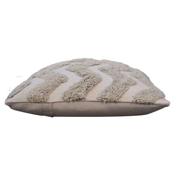 These grey zig-zag cushions feature an embossed texture, offering modern style and plush comfort for sofas, armchairs, or living spaces. Styled as embossed cushions, their versatile grey hue adds a contemporary and sophisticated touch. Sustainably sourced and fully assembled, each cushion showcases natural variations in finish, texture, and size, enhancing their artisanal appeal.
