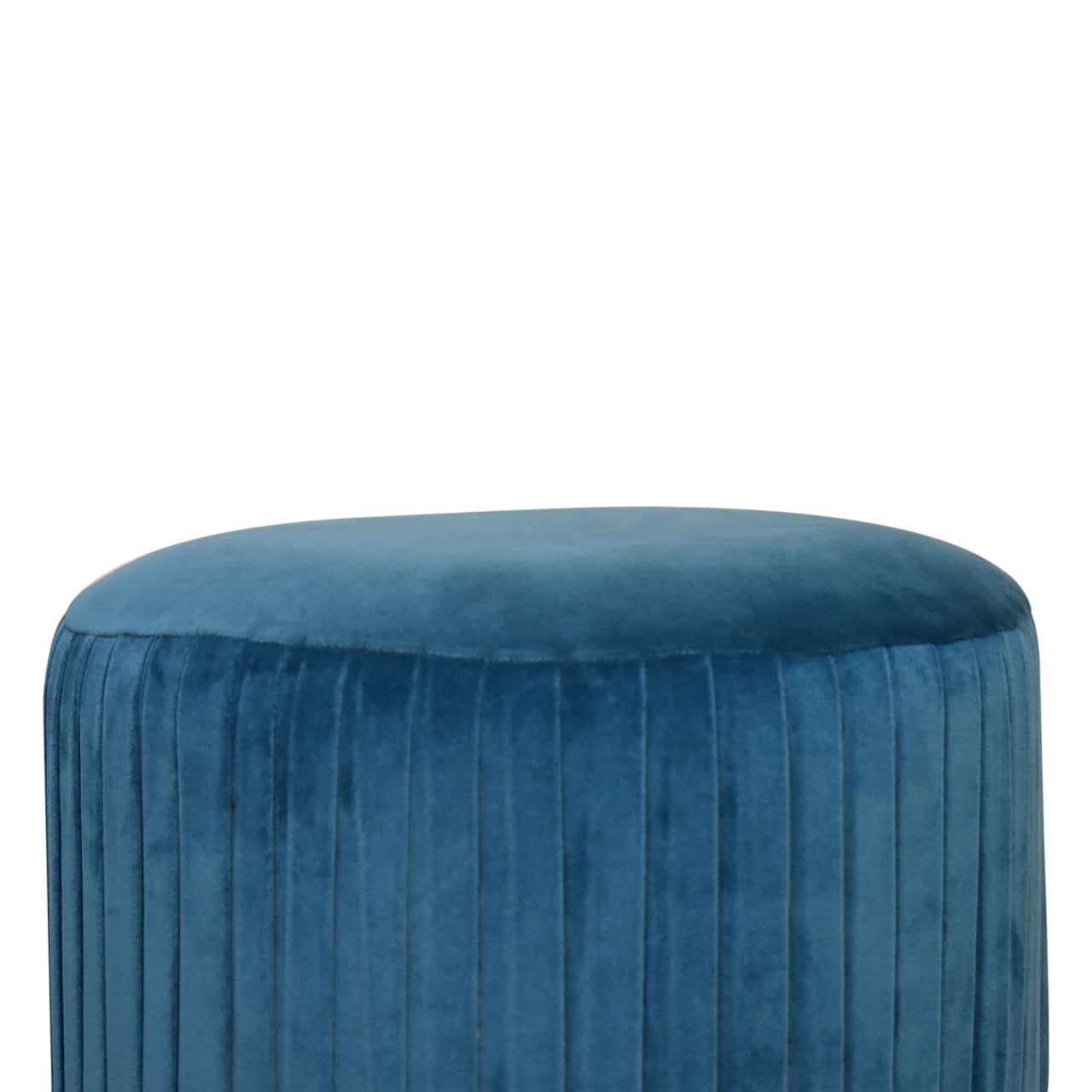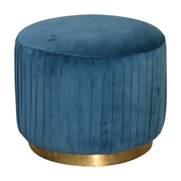 This teal velvet footstool features a plush pleated top and solid gold brass wood base. Fully assembled, it serves as a footstool, extra seating, or decorative accent, combining luxurious texture with sturdy construction for any bedroom, lounge, or living space.