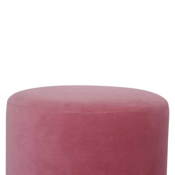 This pink velvet footstool features a rounded upholstered design finished in vibrant cotton velvet. Fully assembled and supported by a solid walnut-finished wood base, it works as a comfortable footrest, extra seat, or decorative accent, adding playful colour and modern versatility to bedrooms, lounges, or living spaces.