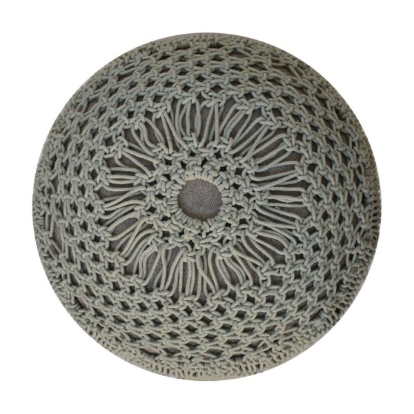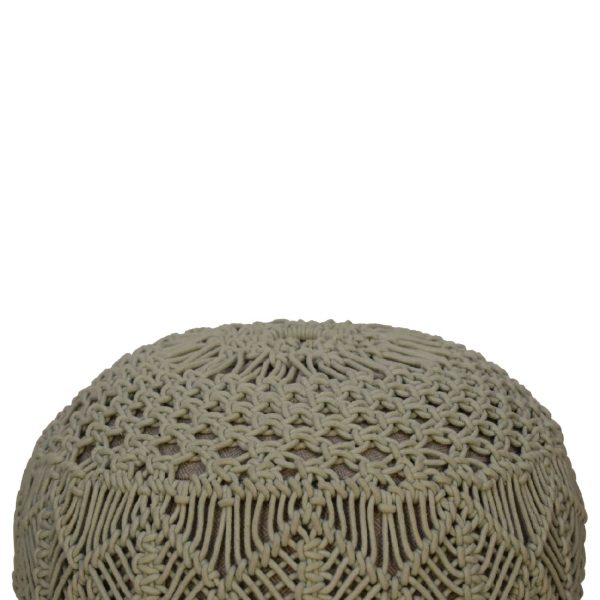 This sage green crochet footstool features a hand-braided cotton top and solid Scandi-style legs. Fully assembled, it serves as a footstool, accent piece, or extra seating, combining modern-boho charm with functional stability for any bedroom, lounge, or living space.