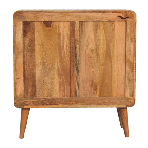 This oak toned cabinet is crafted from solid mango wood with a sleek oak-like finish, combining style with practical storage. Featuring woven doors, polished knobs, and Nordic-style legs, this woven door cabinet also functions as a Nordic style cabinet, providing organised and spacious storage for any living room.