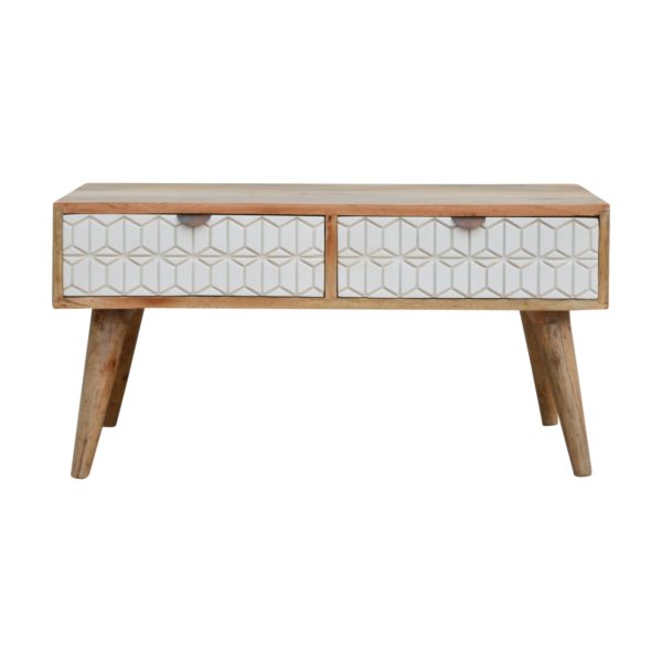 Sleek White Carved Coffee Table