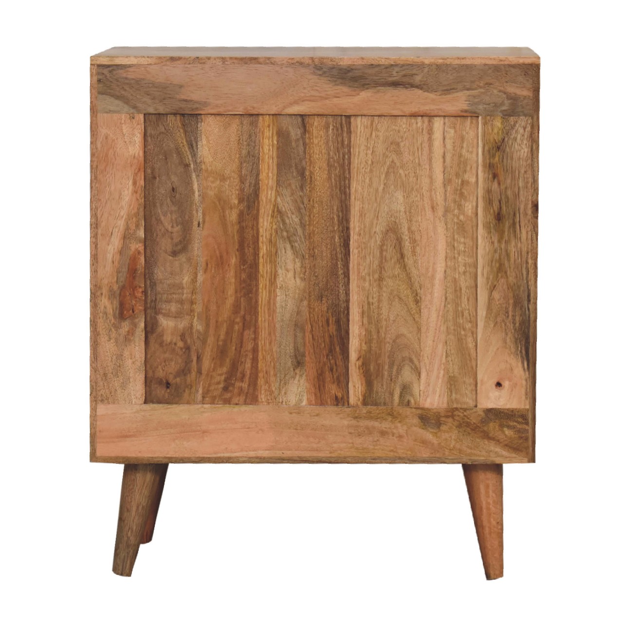 This oak toned chest of drawers is crafted from solid mango wood with a subtle oak-like finish, offering practical storage through three spacious drawers. Designed as a pineapple carved chest of drawers, it features shiny knobs and Nordic-style legs, combining distinctive hand-carved detailing with functional, stylish storage for any room.