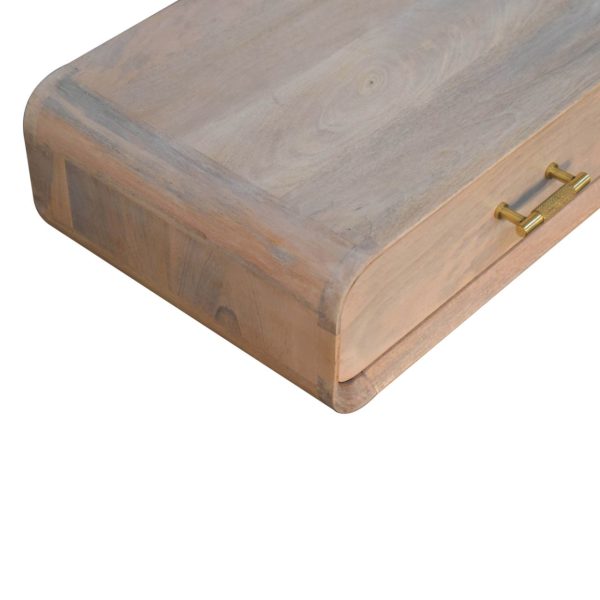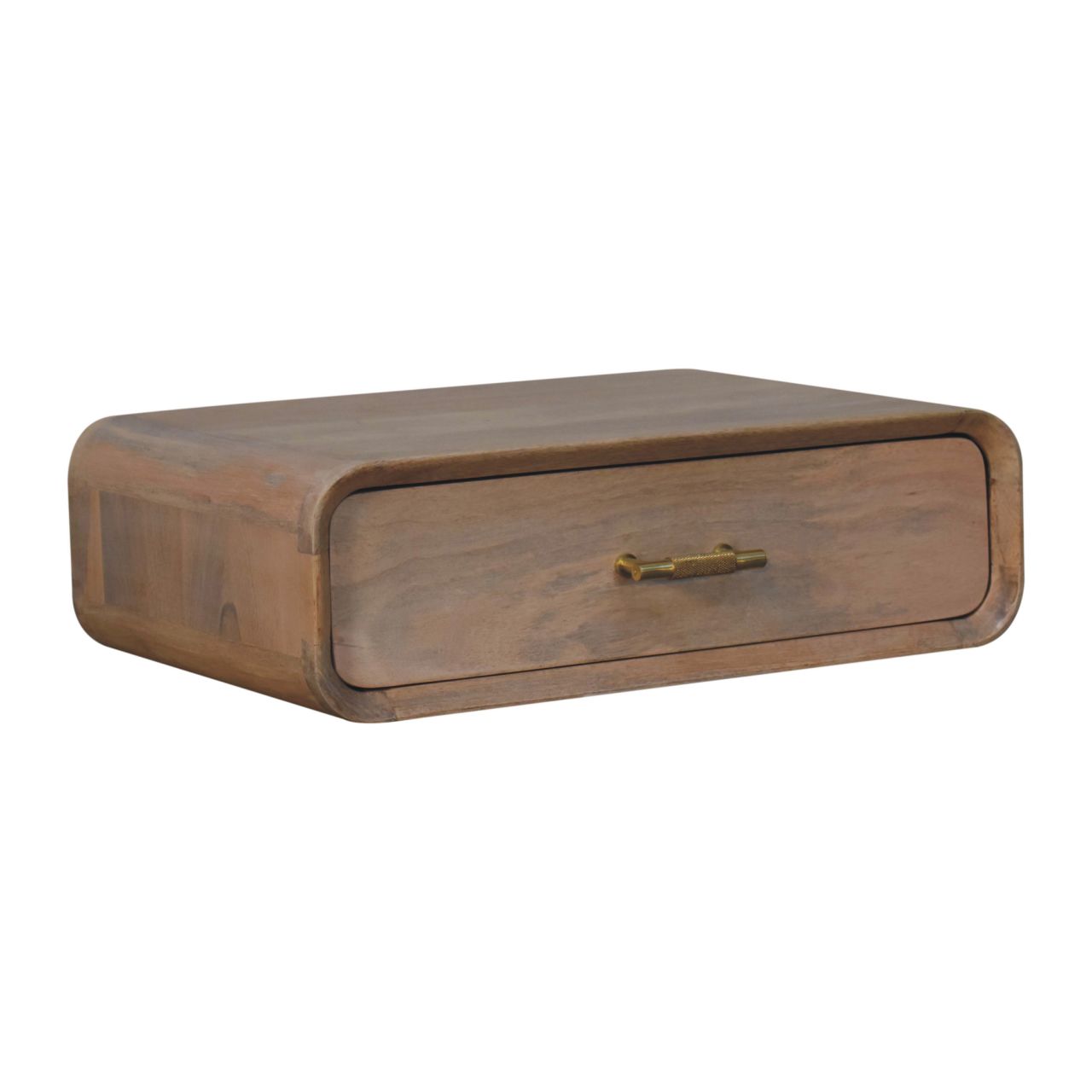 This oak wall mounted bedside table is crafted from solid mango wood with an oak-ish finish and a sleek floating design. The spacious drawer features a modern T-bar handle for smooth access, while the wall-hung structure provides practical space-saving convenience. As a t-bar handle bedside table, it works beautifully beside the bed or as a compact storage unit in any room, combining modern elegance with everyday functionality.