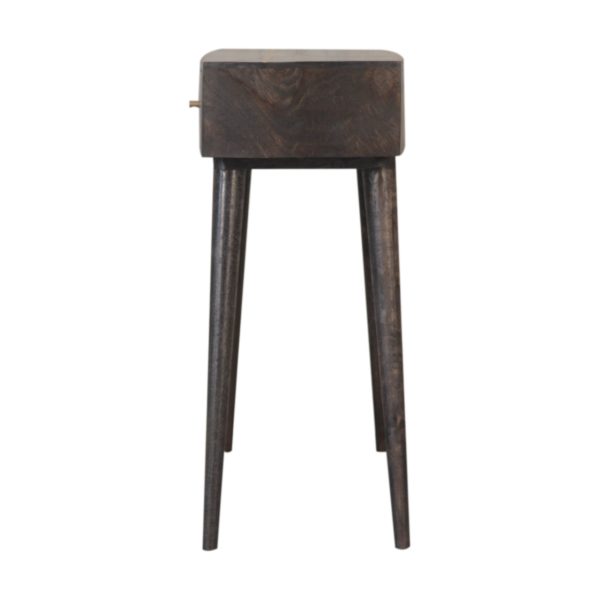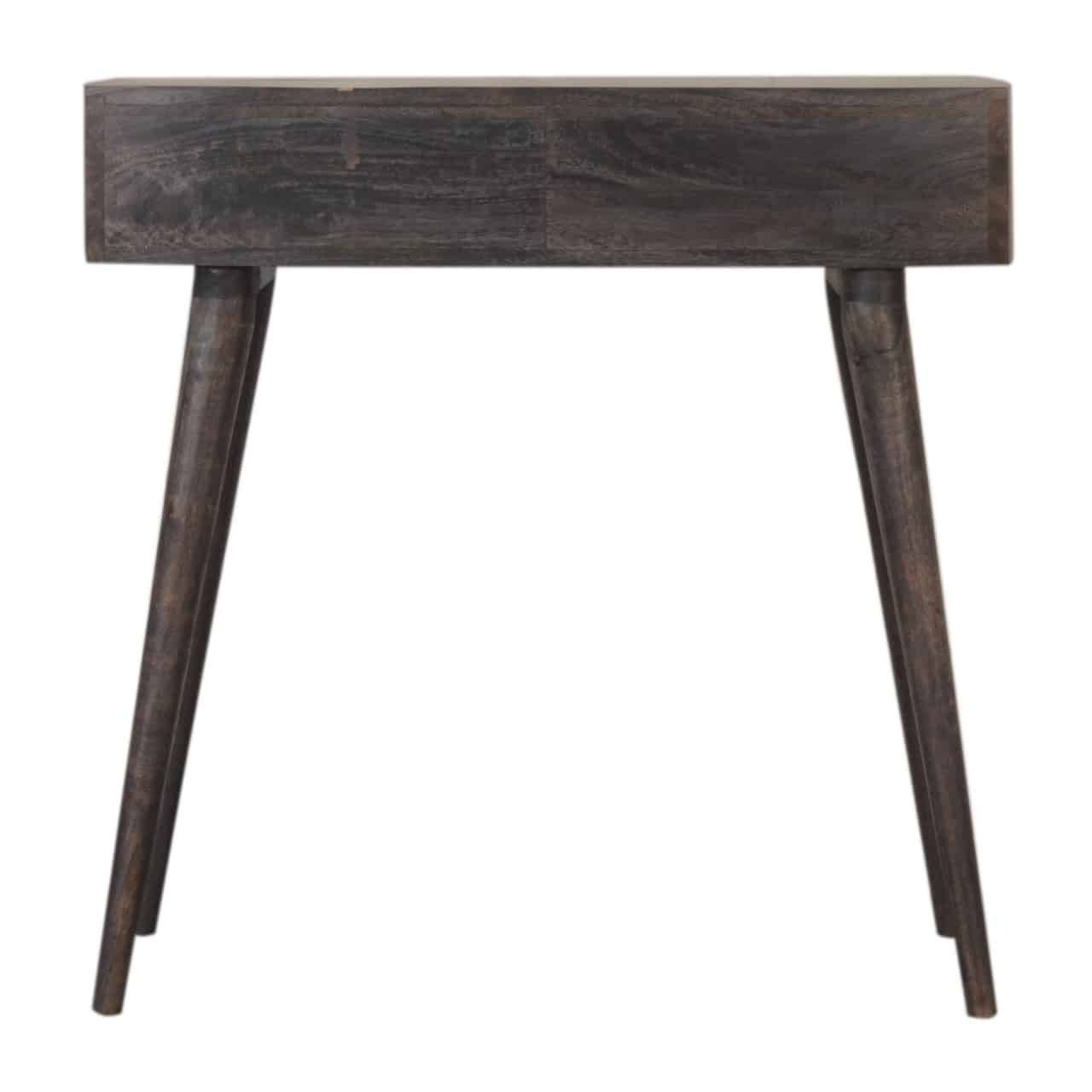 This black console table is crafted from solid mango wood with a stonewash finish that highlights the natural grain and provides two drawers for everyday storage. Sleek and contemporary for living rooms or hallways, it also works as an art deco console table, adding practical organisation with modern character.