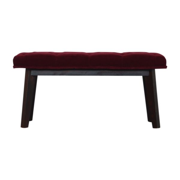Wide Dark Red Velvet Hallway Bench