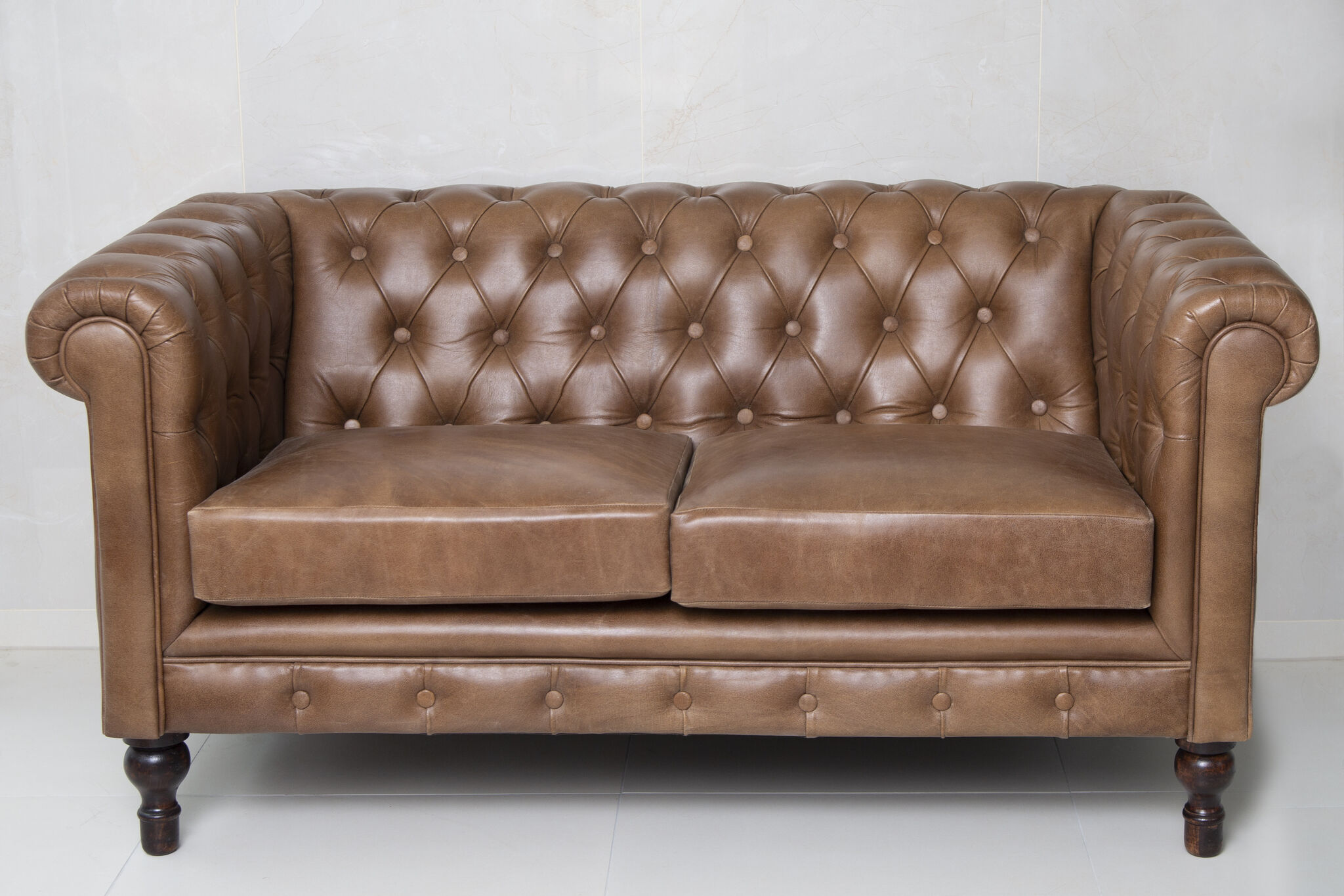 Leather Chesterfields are surprisingly straightforward to look after. Wipe spills immediately with a damp (not soaking) cloth, vacuum the buttoning and crevices regularly with a soft brush attachment, and condition the leather once or twice a year with a proper leather balm. Keep the sofa away from direct radiators and strong sunlight to prevent drying or cracking.
