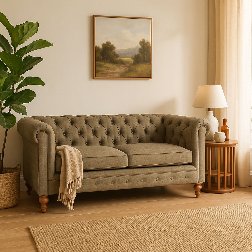 Chesterfields come in a good range of sizes, 2-seaters for smaller rooms or as a stylish second piece, 3-seaters for most UK lounges, and larger 4-seaters if you have the space. The rolled arms give them a generous footprint, so measure carefully and use tape to mark out the exact spot, including doorways and stairs if you’re buying online.